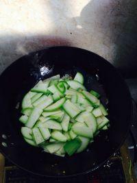4. 锅中留少许油,放入切好的角瓜条,快速翻炒。